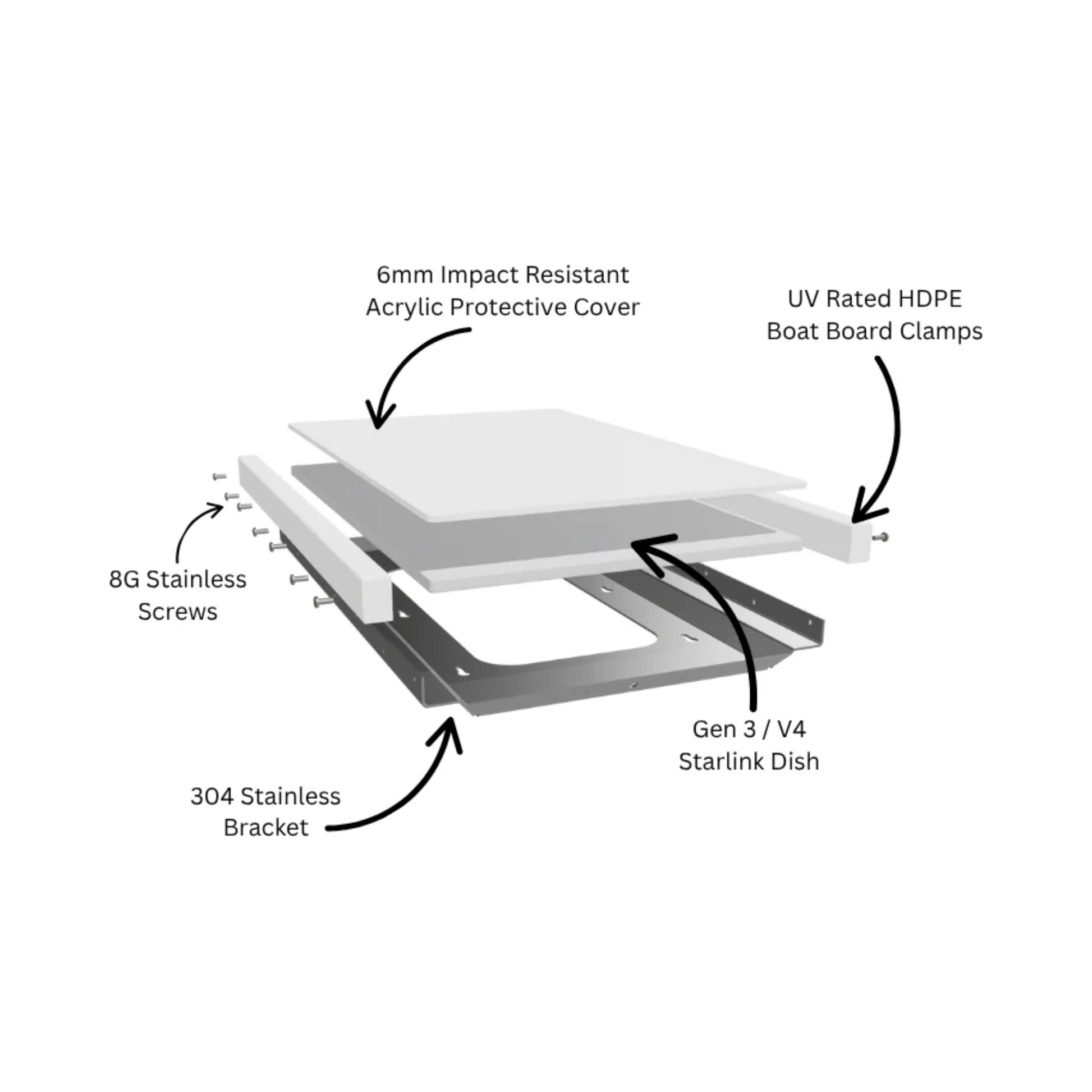 Our robust clamp-style mount is designed to fortify your Gen 3 Dishy, providing enhanced protection against the elements, including rocks, hail, and Australia's harsh climate.